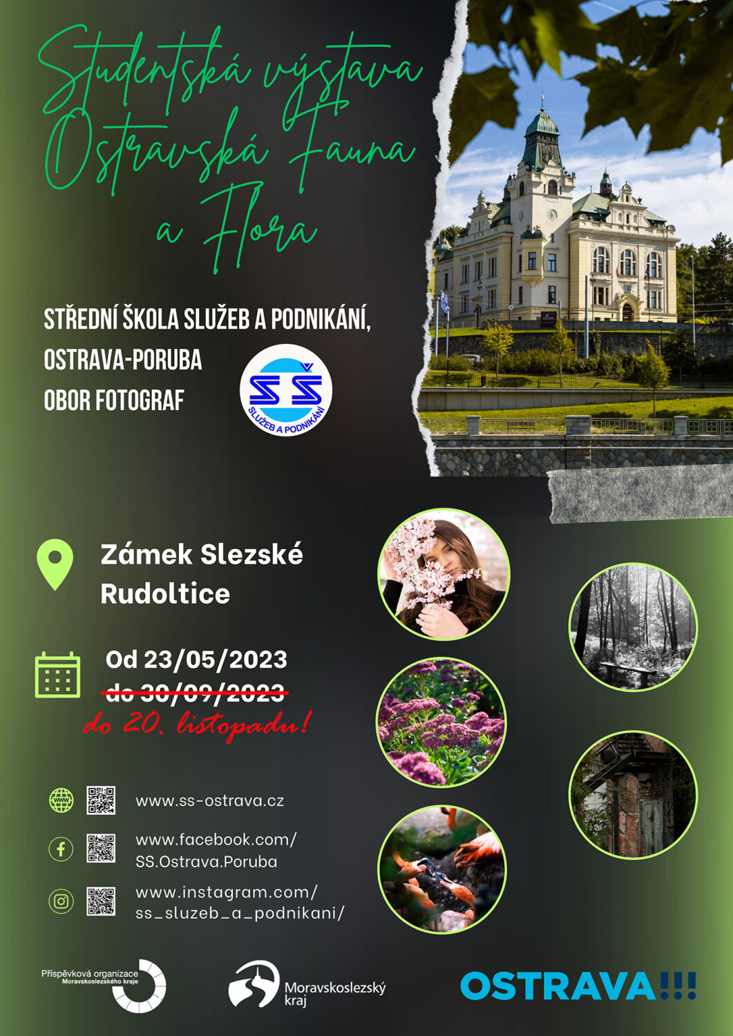 Již popáté naše škola zorganizovala volnočasový fotografický projekt, tentokrát pod názvem „Ostravská fauna a flóra“. Jak již název napovídá, studenti naší školy se zaměřovali během školního roku 2022/2023 na fotograficky zajímavé momenty přírodních zákoutí našeho industriálního města. Své nejlepší snímky pak přihlásili do soutěžní výstavy, instalované v reprezentačních prostorách zámku Slezské Rudoltice.